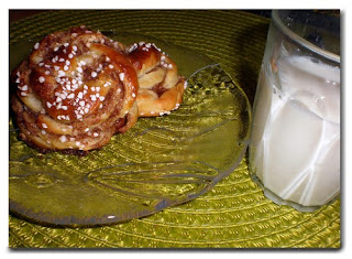 Ett stort glas kall mjölk och varma bullar!! Nu kl 22.00. Perfekt kvällsmat. Mums.
