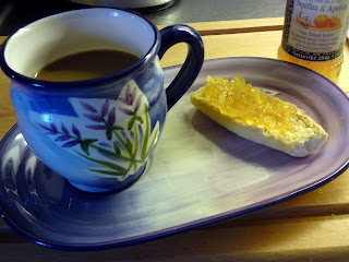 Ska bara ta en fika först ...kaffe och en skorpa med apelsin-ingefärs-marmelad. Gott!
