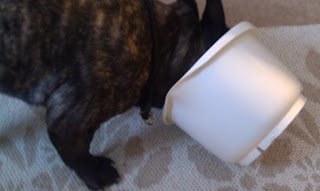 Sigge vaktar noga så att han får slicka skålarna efteråt.