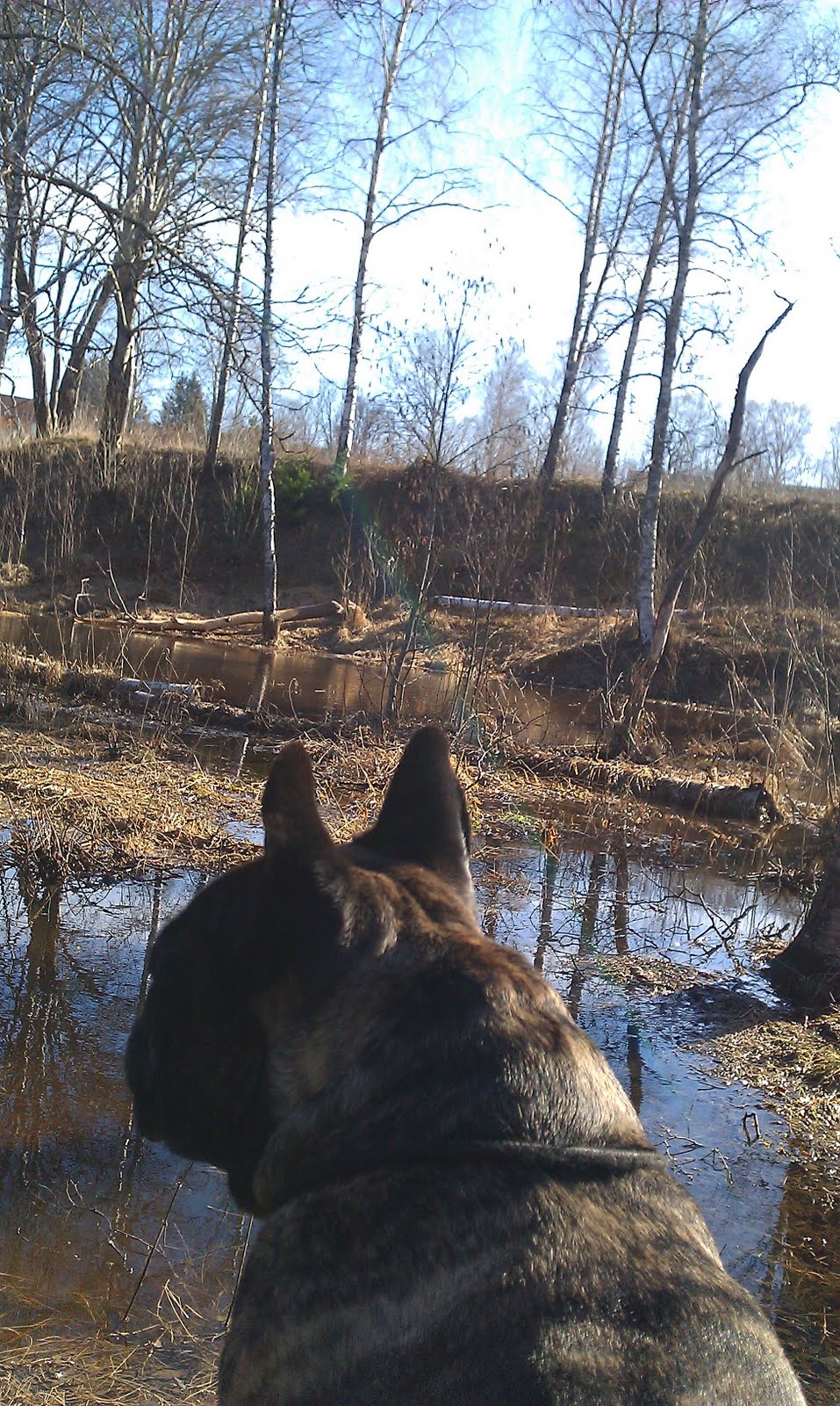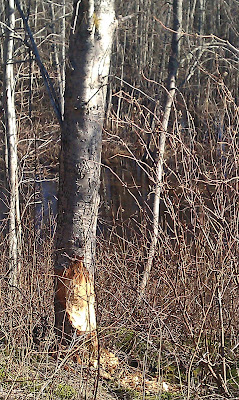 Fåglarna sjön som galningar när vi var ute. Våren är här! Vi såg inga bävrar idag heller...men spår efter dom finns det.